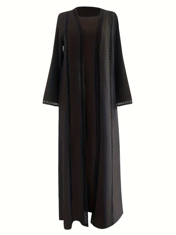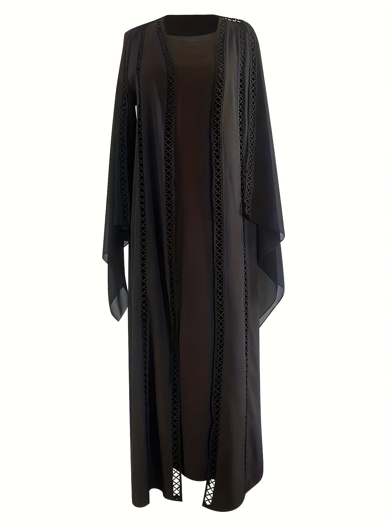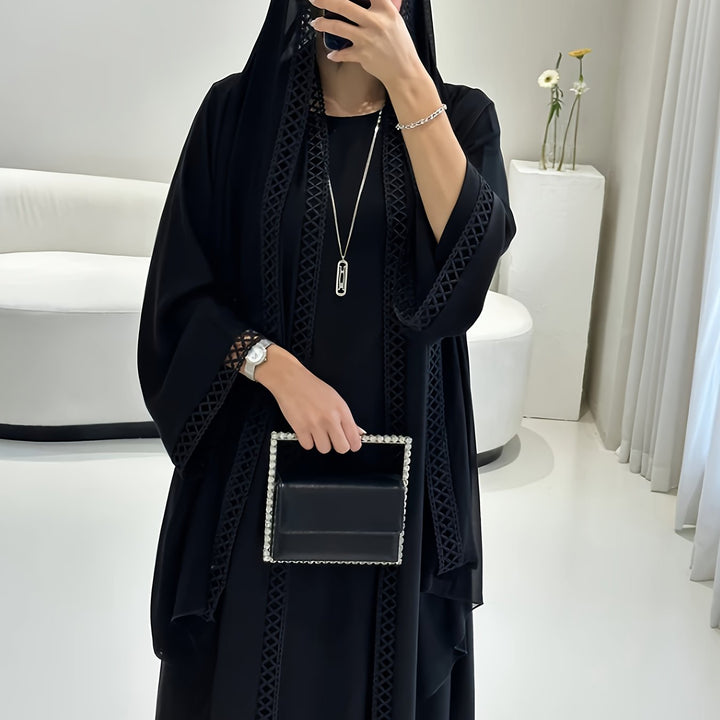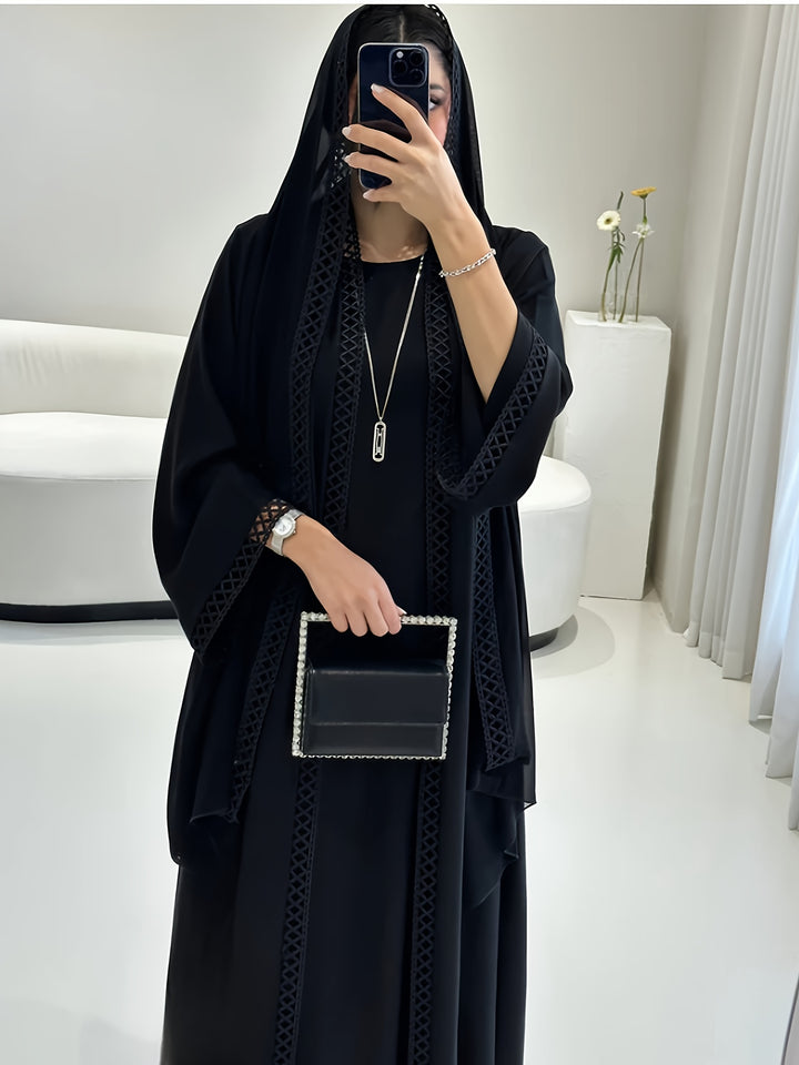 Elegant Black Abaya with Lace Trim, Sleeveless Dress & Chiffon Headscarf - Lightweight, Breathable, Perfect for Spring/Summer, Loose Fit, Long Length, Traditional Middle Eastern Attire, Spring Summer Attire | Elegant Abaya |