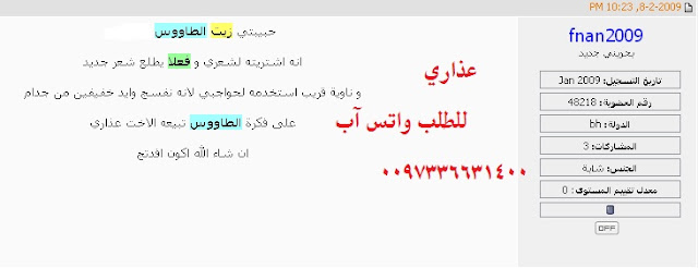 وفية والله بنات كثير كثير جدا والله اخذو زيت الطاووس وقسم بالله انها ولاوحدة اشتكت منه او قالت انها مالقت مفعول